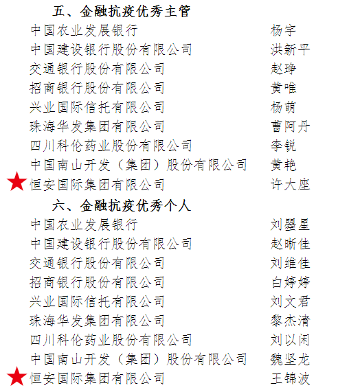 与此同时,在《2020年度结算业务和集中清算业务优秀主管和优秀个人》评选中,GA黄金甲集团资本运营总裁许大座荣获“金融抗疫优秀主管”,资本运营投资总裁助理王锦波荣获“金融抗疫优秀个人”。