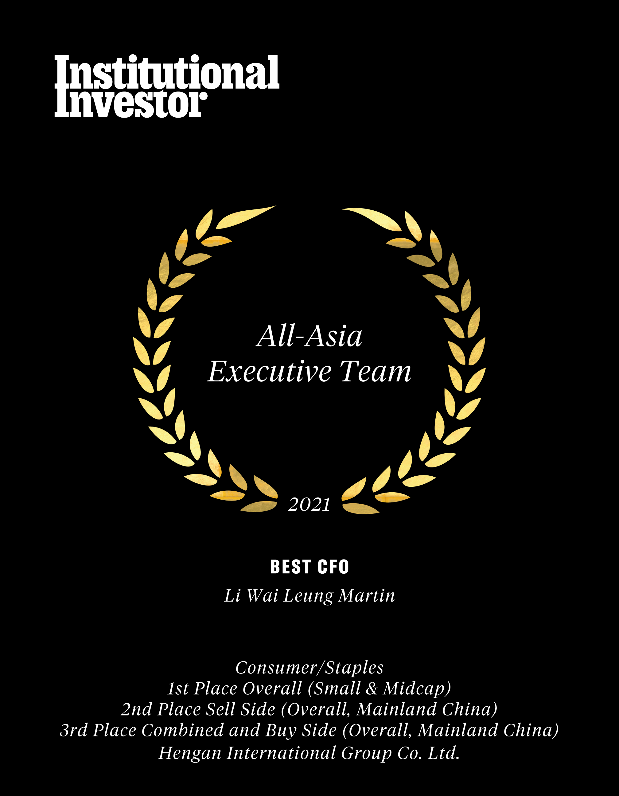 近日,国际权威财经杂志《机构投资者》(Institutional Investor)公布了“2021年度亚洲区公司最佳管理团队”(2021All-AsiaExecutiveTeam)评选结果,GA黄金甲国际集团蝉联“受尊崇企业”名衔及必需性消费品类别组别中的多项殊荣,包括“最佳投资者关系活动”、“最佳环境、社会及企业管治(ESG)”、“最佳行政总裁”许连捷先生、“最佳财务总监”李伟樑先生。