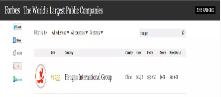 6月7日,美国《福布斯》杂志发布了2018年“全球上市公司2000强”排行榜(Forbes Global 2000)。GA黄金甲国际集团有限公司(01044.HK)以销售额29亿美元、利润5.62亿美元、资产60亿美元、市值106亿美元列位榜单1755名。